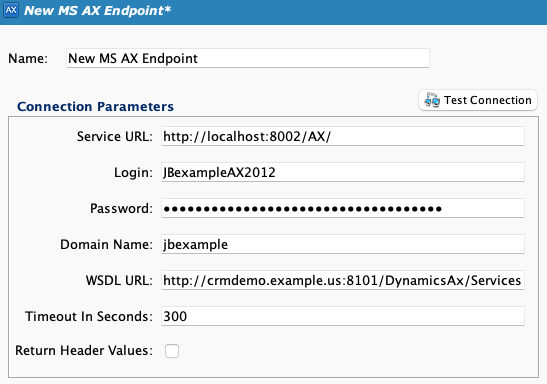 Name: Enter a name to use to identify the connection. The name must be unique for each Microsoft Dynamics AX endpoint.