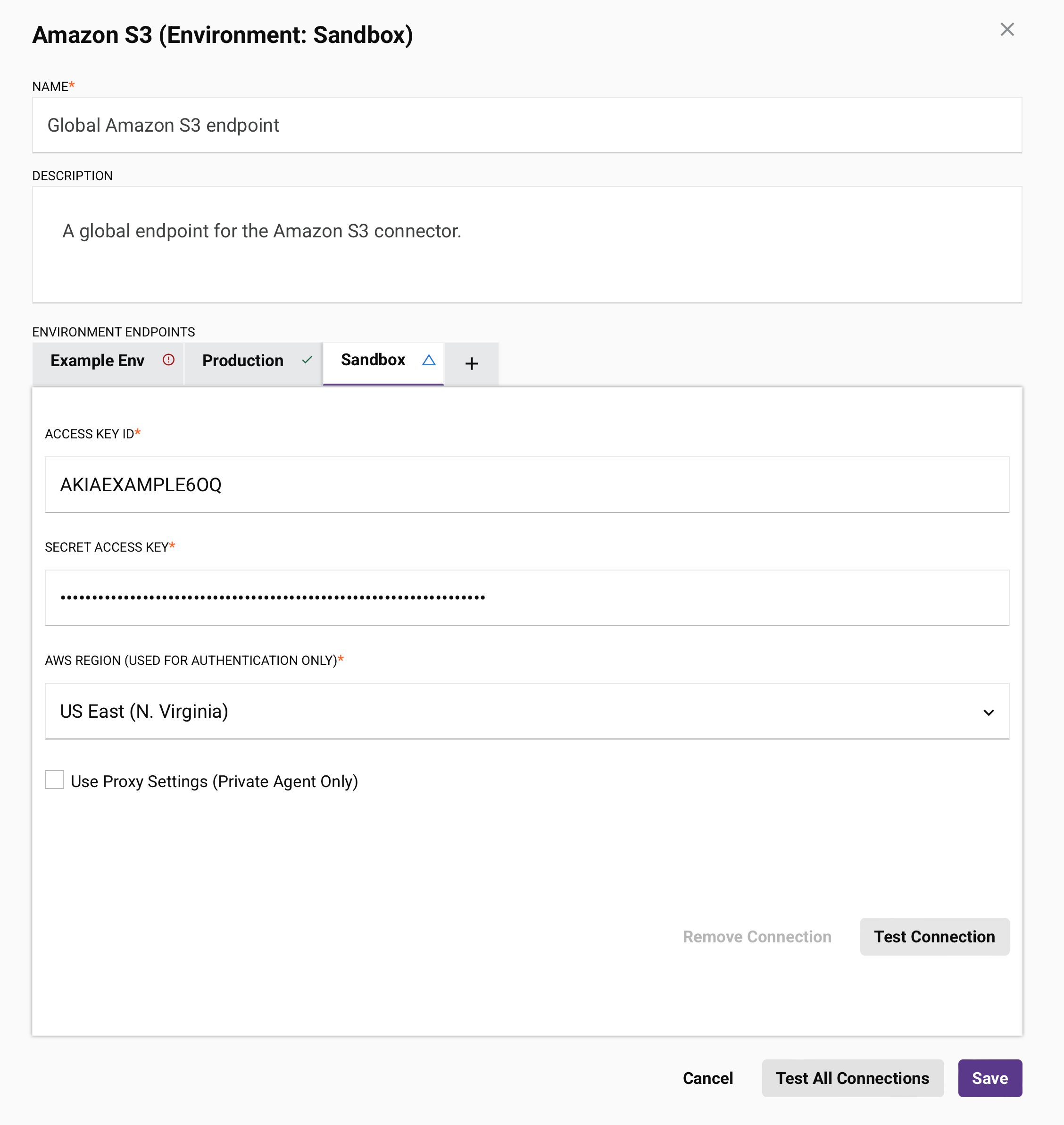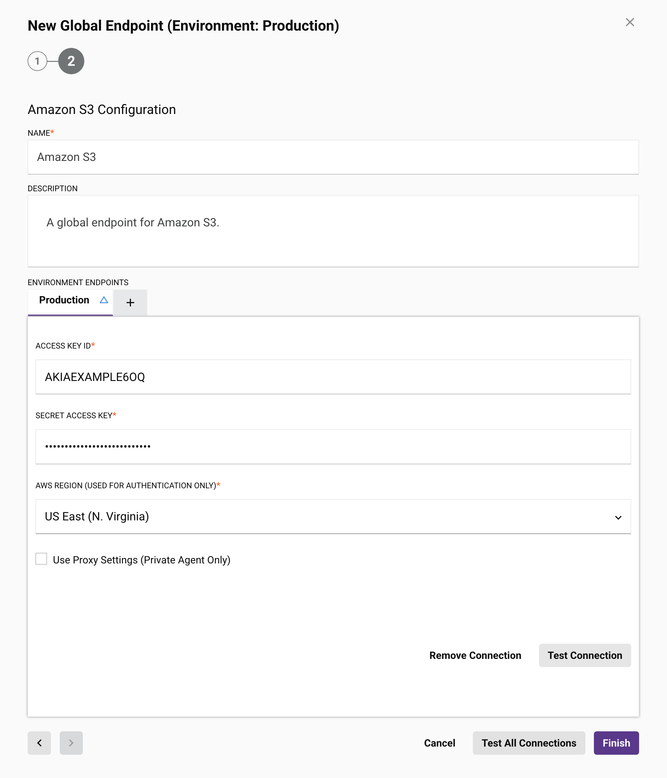 Test Connection: Click to test the endpoint connection using the provided configuration.